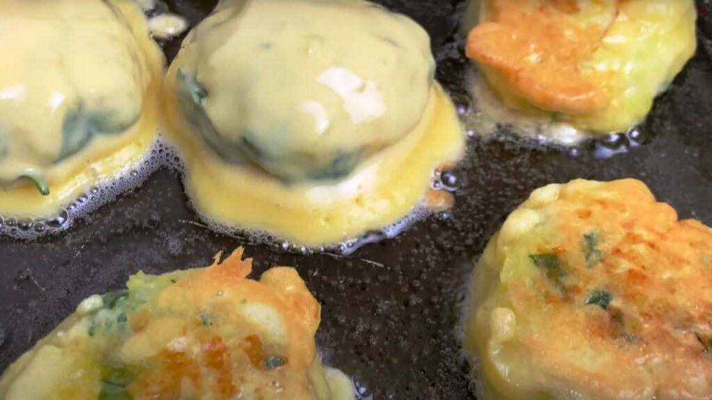 Kepkite pyragėlius iš abiejų pusių, kol paruduos.