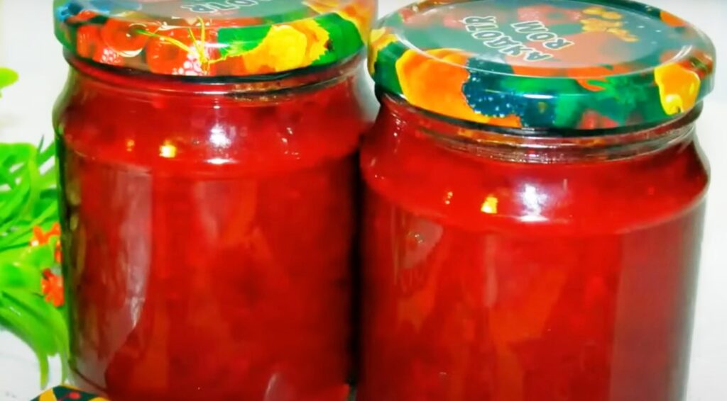 Tada įpilkite acto ir augalinio aliejaus, komponentus sumaišykite. Supilstome adžiką į stiklainius ir sandariai uždarome dangteliais. Kai atvėsta, juos galima dėti į šaldytuvą.